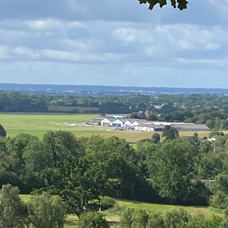 You rejoin the GW at the bottom of Princes Road and head off through mixed woodland and narrow paths skirting around Earlswood Park until finally emerging into open countryside, heading uphill towards Garstons House. The path runs between fields of livestock and already gives hints of fabulous views to come off to the right. Crossing a byway, you follow the path into miles of fields that at the moment have broad beans growing in them (shame, I can’t stand broad beans) peppered with pill boxes. Following the bean fields comes the first of a number of short stints on the road. Passing Kings Mill on the right and heading over Clay Lane the path follows the road up (and up and up!) to the wonderfully named Hogtrough Lane. Take a pause (you’ll need it) and then follow the GW off to the left, a narrow path tracking above Bray’s Farm and giving the first beautiful view out over farmland and with the aerodrome in the distance!